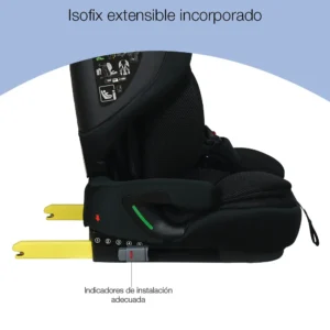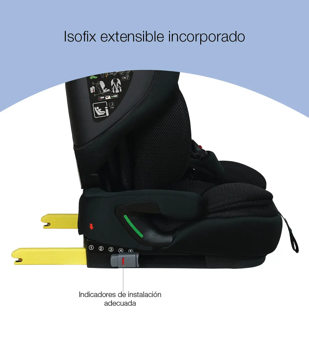 Y sin renunciar a nada: Isofix extensible incorporado, alerta sonora de la correcta instalación del Top Tether, dispositivo de protección lateral SIP, respaldo reclinable en 5 posiciones y plegado ultracompacto.
